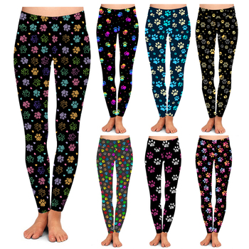 Sıcak satış özel baskılı donanma renk gökkuşağı renk köpek Paw kemik baskı tereyağı yumuşak yüksek bel tayt